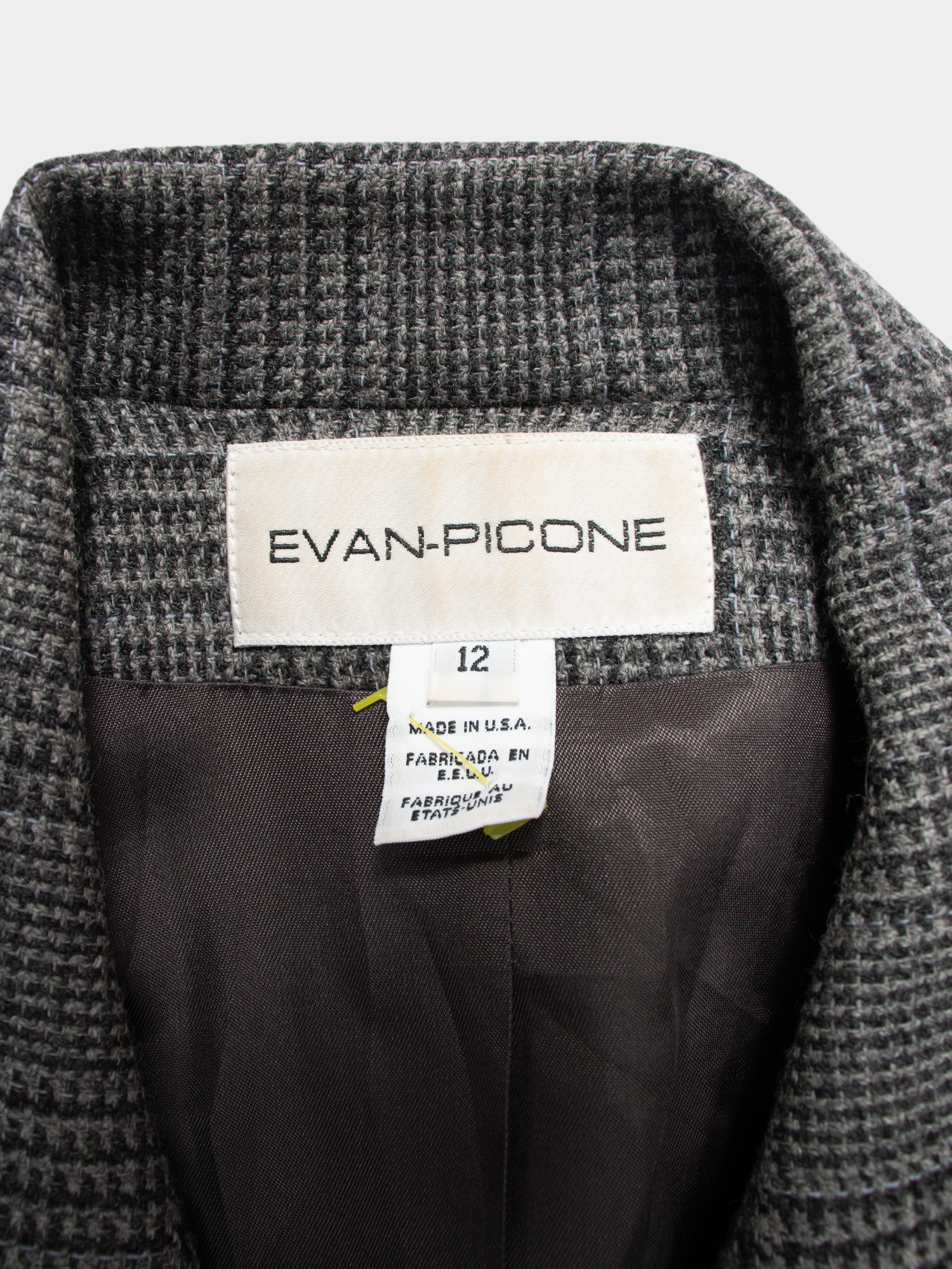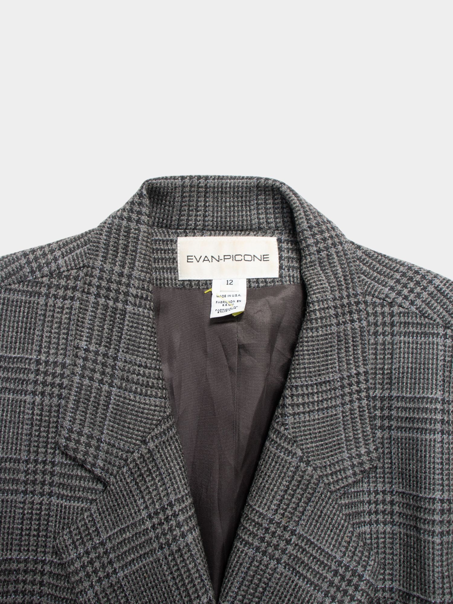 This Evan-Picone grey check blazer is a classic piece of vintage fashion. Featuring a double-breasted design and made...