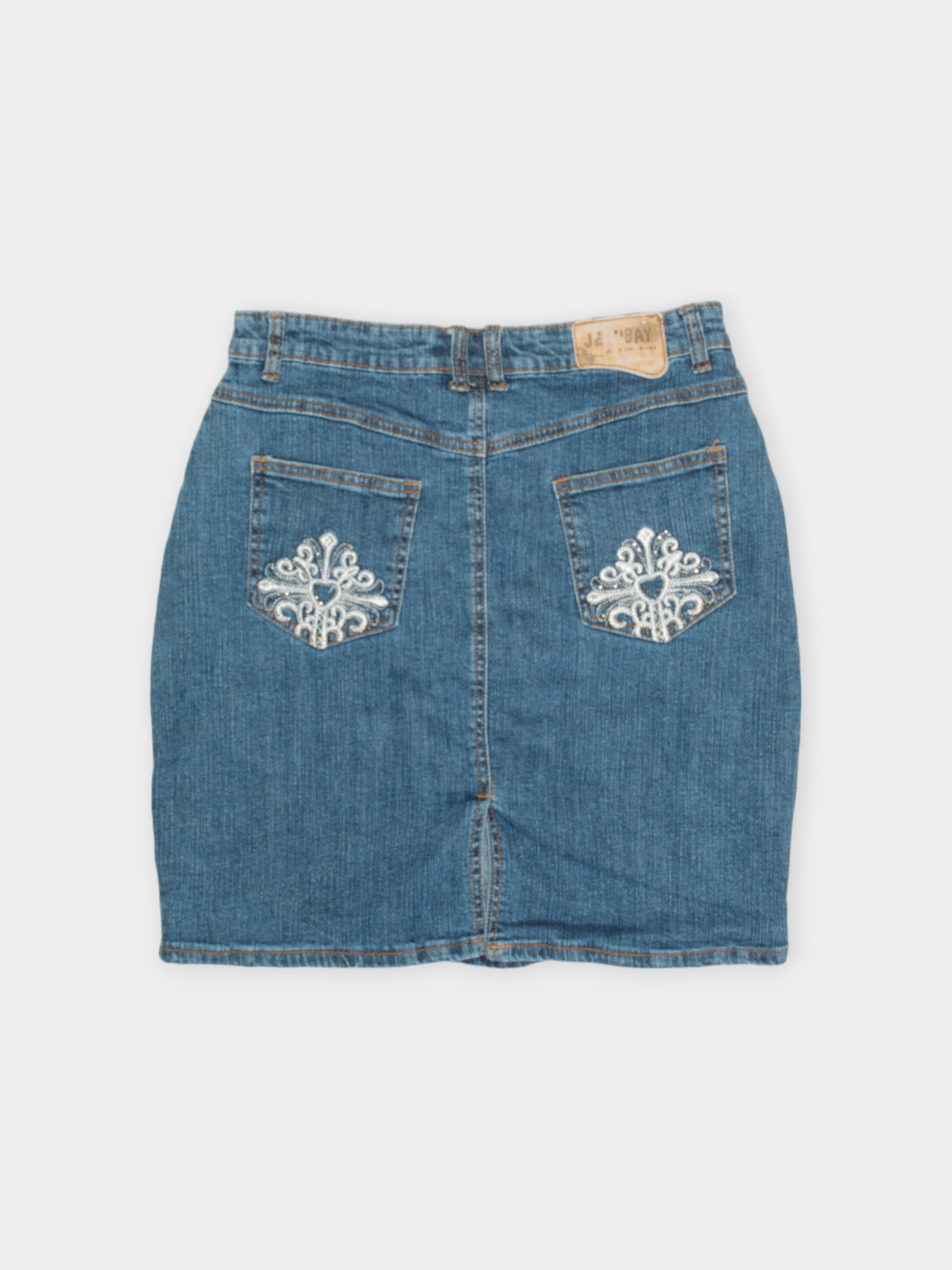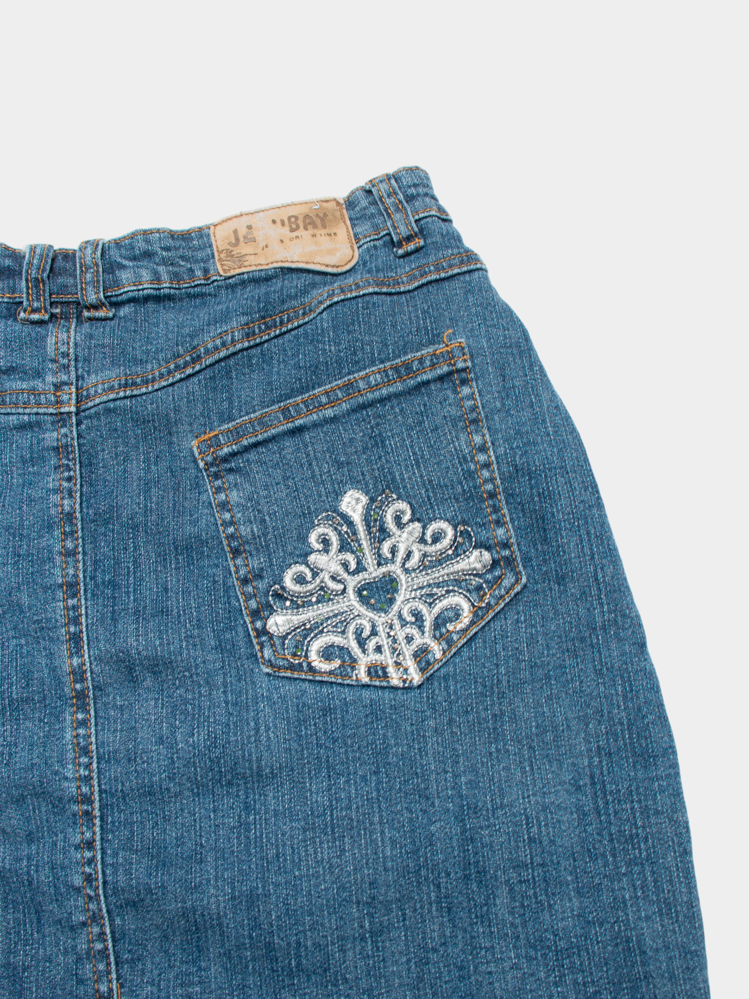 Y2K Jeanbay Blue Denim Embroidered Skirt 30W